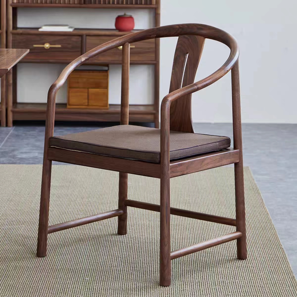 產品風格: 新中式產品型號: ky--029產品主材: 北方老榆木/北美進口FAS級黑胡桃木產品尺寸: L 58x W 47 x H 87cm(坐高42)